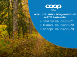 Coop Põlva kaupluste lahtiolekuajad 18. ja 20. augustil